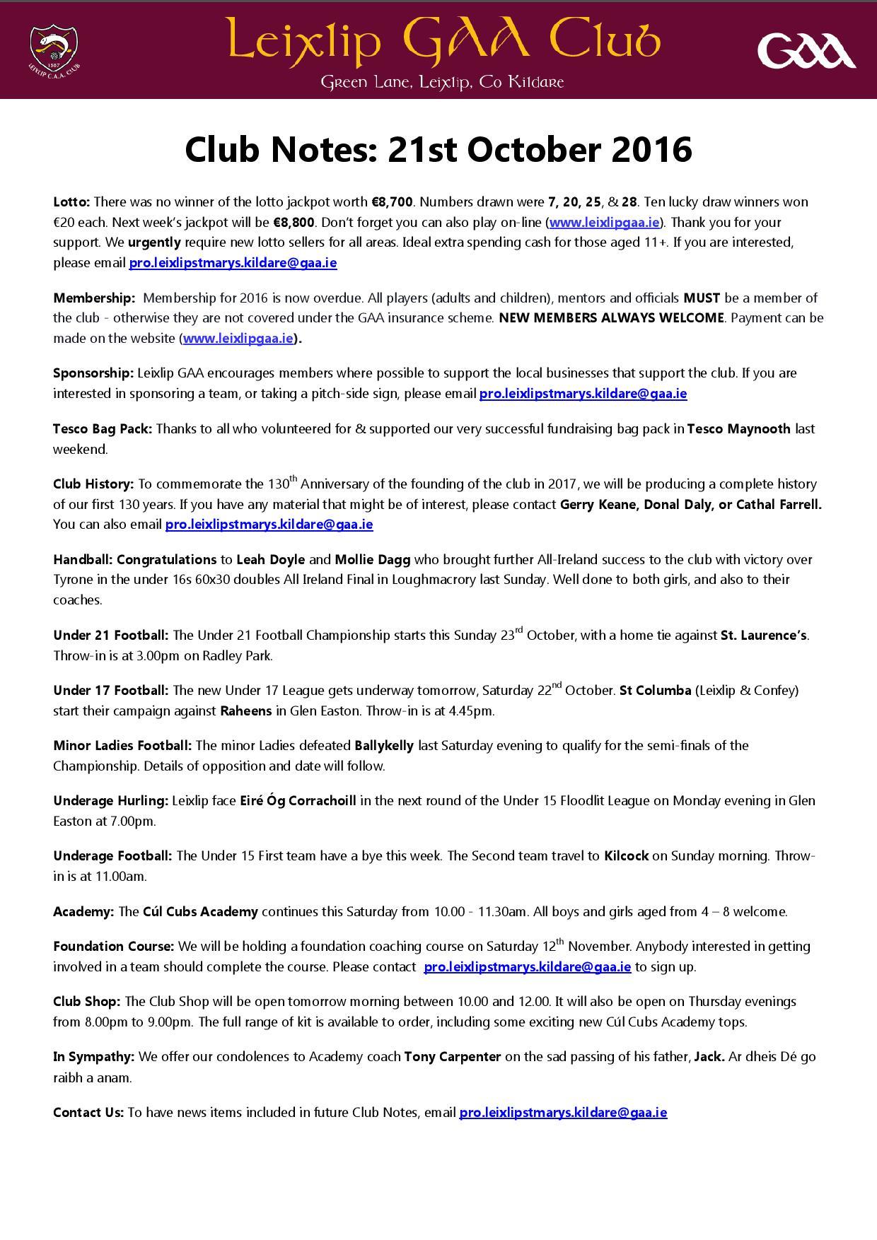 ClubZap Club Notes 21st October 2016 Very well made.