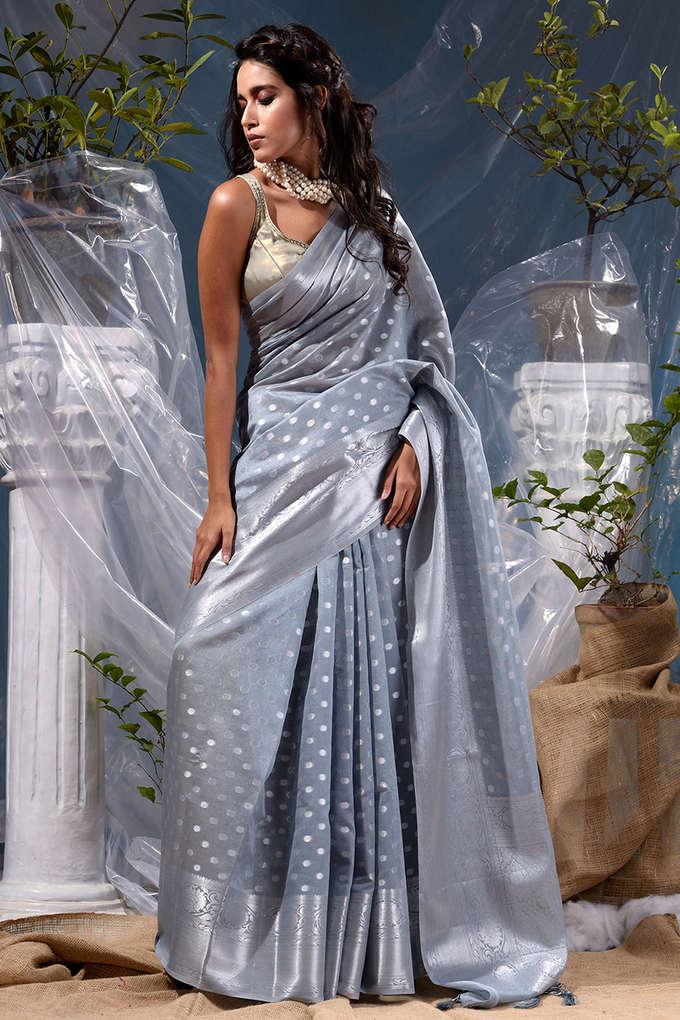Buy BANARASI PATOLA Grey Grey With Silver Zari Weaved Banarasi Very well made.