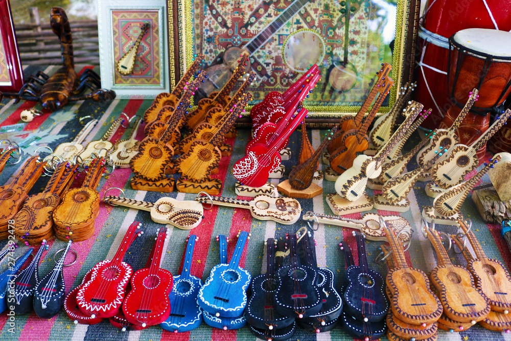 Wooden handmade souvenirs. string musical instruments at souvenir Very well made.