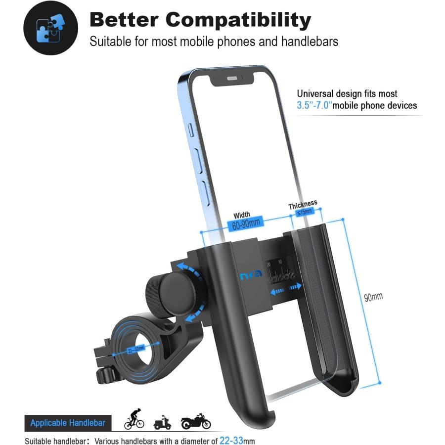 visnfa New Bike Phone Mount with Stainless Steel Clamp Arms Anti Very well made.