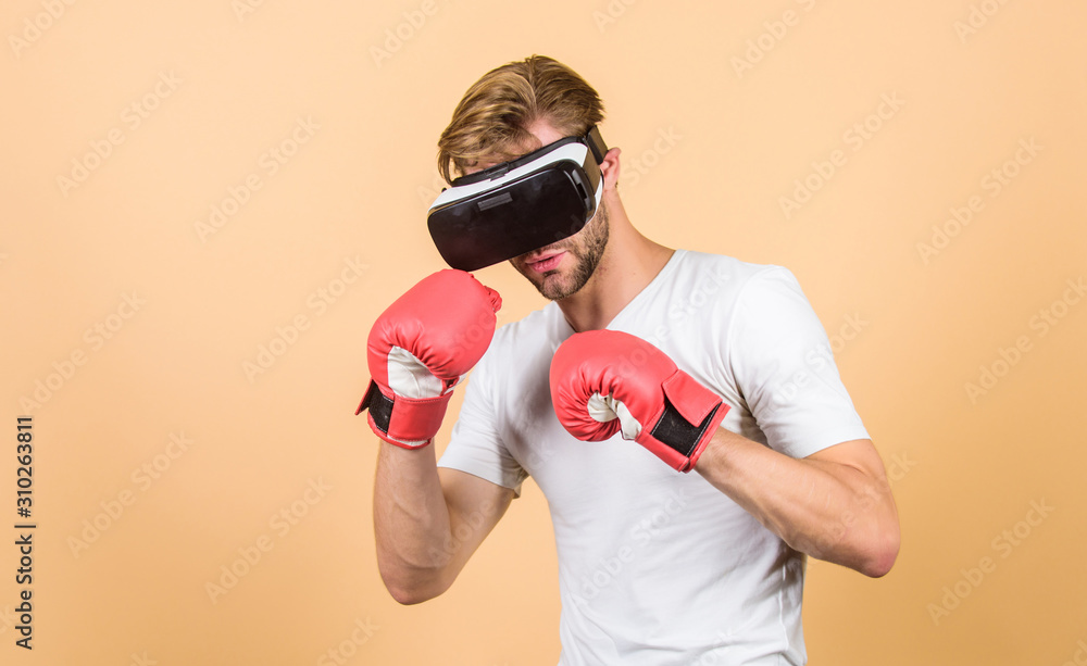 Boxer training utilizing VR technology or virtual reality wearing VR Very well made.