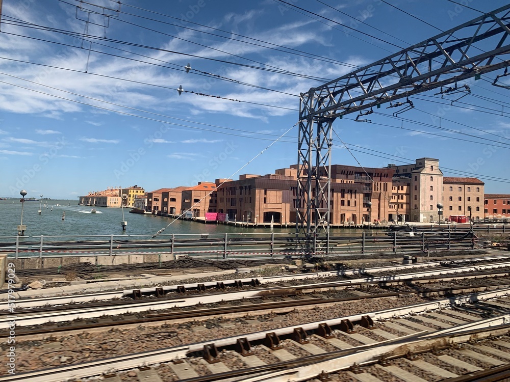 Foto de Electric train tracks rails going to Venice Santa Luzia Very well made.