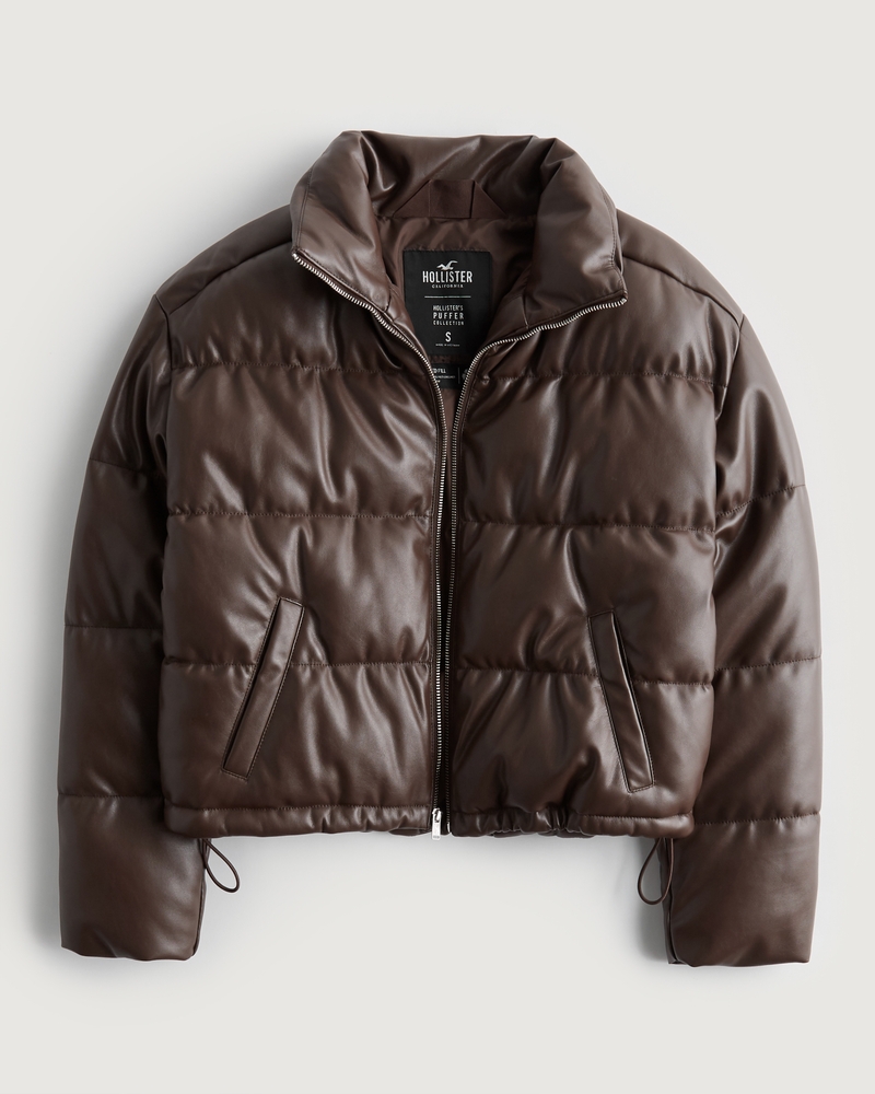 Women s Vegan Leather Puffer Jacket Women s Sale HollisterCo Very well made.